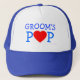 Cute Father of The Groom Love Heart Rehearsal Hat in blue and white is perfect for a casual beach wedding, too. It's got a love heart where the "o" in "Pop" should be...for the father of the bridegroom to wear to designate his special status during wedding rehearsal...and afterwards, too.