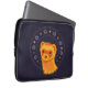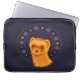 Cute ferret laptop sleeve with a digital illustration in yellow, orange and purple depicting one of these adorable fluffy animals smiling, decorative elements, flowers and stars around it. Great gift for a ferret mum.
