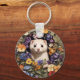 Cute Ferret Nestled In Pansies Garden Key Ring