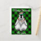 Cute festive holiday Penguin green black plaid Postcard