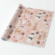 Cute Festive Pink Christmas Tree Snowman Reindeer Wrapping Paper
