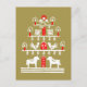 Cute Festive Scandi Red Gold Christmas Tree Postcard