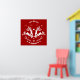 modern outtake of Scandinavian Christmas folk art with birds, branches, berries, hearts and two jumping reindeer in white and red tones, for modern holiday season Christmas decor