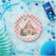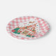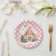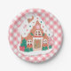 Cute Festive Snowy Pink Gingerbread House Gingham Paper Plate