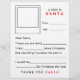 Fill in the blank Letter to Santa stationery. There is a blank square box where your child can draw or doodle what they want for Santa. There are fill in the blank sentences, which he or she can fill in by hand. The back is a red and white design like a candy cane.
