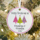 The first Christmas as a grandfather or grandmother is a very special moment. Celebrate them with this cute ornament featuring pink, purple, yellow, and green Christmas trees. You can replace the text "grandma and grandpa" if you want to give it to a new aunt, sister, or anyone else you want.
