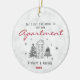 Cute first Christmas in our new apartment monogram ceramic ornament. Celebrate your first Christmas in your new beautiful apartment with a cute custom holiday ornament featuring a cute building surrounded by trees. Personalise it by changing the year and your family name.
