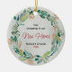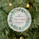 Cute first Christmas in our new home wreath ceramic ornament. Celebrate your first Christmas in your new beautiful home with a cute custom holiday ornament featuring a beautiful wreath and modern typography. Personalise it by changing the year and your family name.