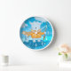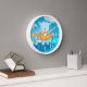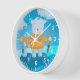 An adorable wall clock with a cute cartoon polar bear on his way back from his fishing adventures . Personalise it with the child's name . Choose the frame and hand colour of your choice . Ideal for a nursery room , child's room , daycare or classroom .