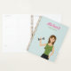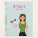 This planner features Destei's illustration of a cute girl who is holding a grey dumbbell weight in her hand. The girl has long brown hair and she is wearing a green shirt. The background colour is light blue. On the top there are personalizable text areas for the title of the planner.