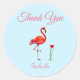Cute Flamingo & Heart Thank You on Light Blue Classic Round Sticker