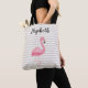Cute Flamingo Monogram Tan Stripe Beach Tote Bag