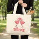 Cute Flamingo Wedding Tropical Beach Bride Large Tote Bag