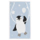 Cute illustration of a penguin holding onto a balloon on kids Christmas gift bag.
