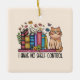 Cute Floral Books and Cat Ceramic Ornament