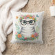 Cute Floral Cat with Glasses Cushion
