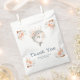 Beautiful baby shower favor bag features a dolphin with coral pink floral arrangements. Perfect for a baby shower. The words can be changed to suit your own details or requirements