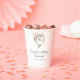 Beautiful baby shower paper cup features a dolphin with coral pink floral arrangements. Perfect for a baby shower. The words can be changed to suit your own details or requirements