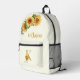 Boho chic modern elegant floral monogrammed initial name unique personalised feminine backpack with pretty watercolor bright yellow burnt orange sunflower and sage green greenery bouquets. ++++++++++ A cute keepsake gift for her: girl, bride, bridesmaid, mother, daughter, sister, or best friend on a birthday, anniversary, Christmas, bridal shower, or new home housewarming.
