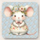 This charming illustration features an adorable white and grey mouse dressed in a vintage-style floral dress, complete with a delicate lace hem and a sweet pink bow. With her oversized ears blushing with soft pink tones and a cheerful flower crown nestled between green leaves, she exudes a delightful woodland innocence. The pastel colour palette, including creamy neutrals, soft blues, and rosy pinks, gives the design a gentle, nostalgic warmth perfect for cottagecore and nursery themes. Her joyful expression and dainty details create a whimsical, storybook vibe that’s ideal for adding a touch of playfulness to seasonal decor, baby showers, or children’s spaces. This piece beautifully blends soft watercolor textures with a clean illustrative finish, making it visually inviting and emotionally comforting. AI generated artwork.
