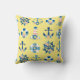 Cute Floral Nautical Anchor Lighthouse Yellow Throw Pillow