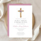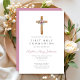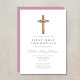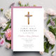 Cute Floral Pink Cross First Communion Invitation
