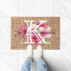 Cute pinky floral summer monogrammed welcome text script and initial doormat.