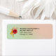 Address labels with a cute wildflower floral bouquet with flowers in red and yellow, contrasted with pink and brown leaves and sprigs. Set on a mint green and light coral pink gradient background.