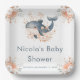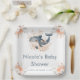 Beautiful baby shower plate features a whale with coral pink floral arrangements. Perfect for a baby shower. The words can be changed to suit your own details or requirements