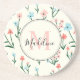 Cute Flower Ivory White Elegant Pink Monogram coaster
