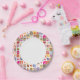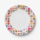 cute flowers, birds, hearts squares pattern paper plate