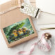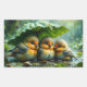 Cute fluffy birds in rain rectangular sticker