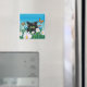 Cute Fluffy Black Kitten and Daisies Art Magnet