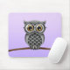 Cute Fluffy Grey Owl with Glasses, Purple Mouse Mat