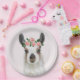 Cute Fluffy Llama With Rose Flower Crown Pink Paper Plate