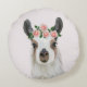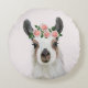 Cute Fluffy Llama With Rose Flower Crown Pink Round Cushion