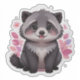 A vinyl sticker of a cute fluffy racoon.