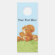 This paper door hanger has a cute fluffy red squirrel licking his lips while sitting in the grass under a blue sky surrounded by his stash of nuts and acorns. Customise your text on the front and back with the template.