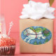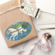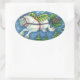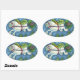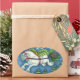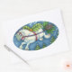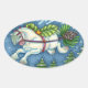 CUTE FLYING CHRISTMAS PONY PULLING PINECONE SLEIGH OVAL STICKER