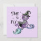 This cute design features a flying cute purple witch cat with the phrase "Time To Fly". It is perfect for a Halloween celebration.