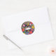 Cute Folk Art Black Cat and Flowers Classic Round Sticker
