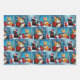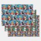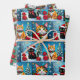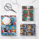 Adorable cat themed Christmas gift wrap with impasto and paper quilling style folk art cats and poinsettias. Colors used are red, teal, green and blue.