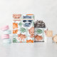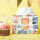 This adorable design features cute woodland animals, watercolor greenery leaves on a mint and white chequered background.