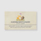 Magnetic business cards with a cute illustration featuring a baby deer and a little squirrel holding an acorn and a butterfly flying above their heads. These adorable woodland creatures on standing on some grass with some whimsical mushrooms by their feet. Background is an image of vintage parchment / kraft paper, fake not real.
