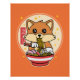 Cute Fox Eating Ramen Kawaii Japanese Food Gift Poster