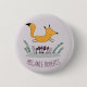 Adorable leaping happy fox illustration on personalised kids button.