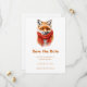 Save the date card with an adorable illustration featuring a cute little red fox face