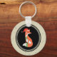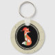 Cute Fox in Christmas Hat inside a Black Circle Key Ring