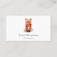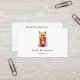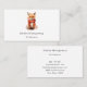 Business card with an illustration of a reddish orange fox pup. A subtle smile on his face. Wearing a nice red scarf for warmth.