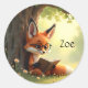 Cute fox wearing glasses lies comfortably beneath a tree in the forest, reading a book. Cute, custom sticker.